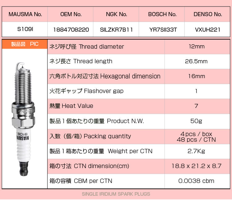 Bujías de Iridio y Platino S510IP MASUMA de Fábrica, Resistentes, para Mazda