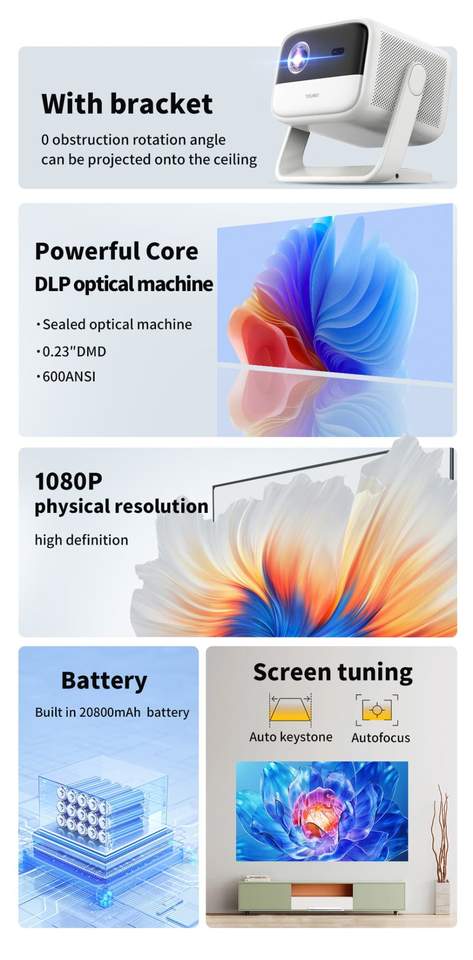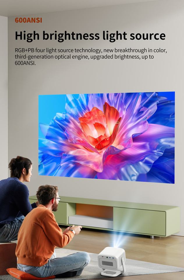 Mini Proyector de Video S7 Android 11 600ANSI Lúmenes 4K 3D Compatible con Google TV Karaoke Portátil para Cine en Casa