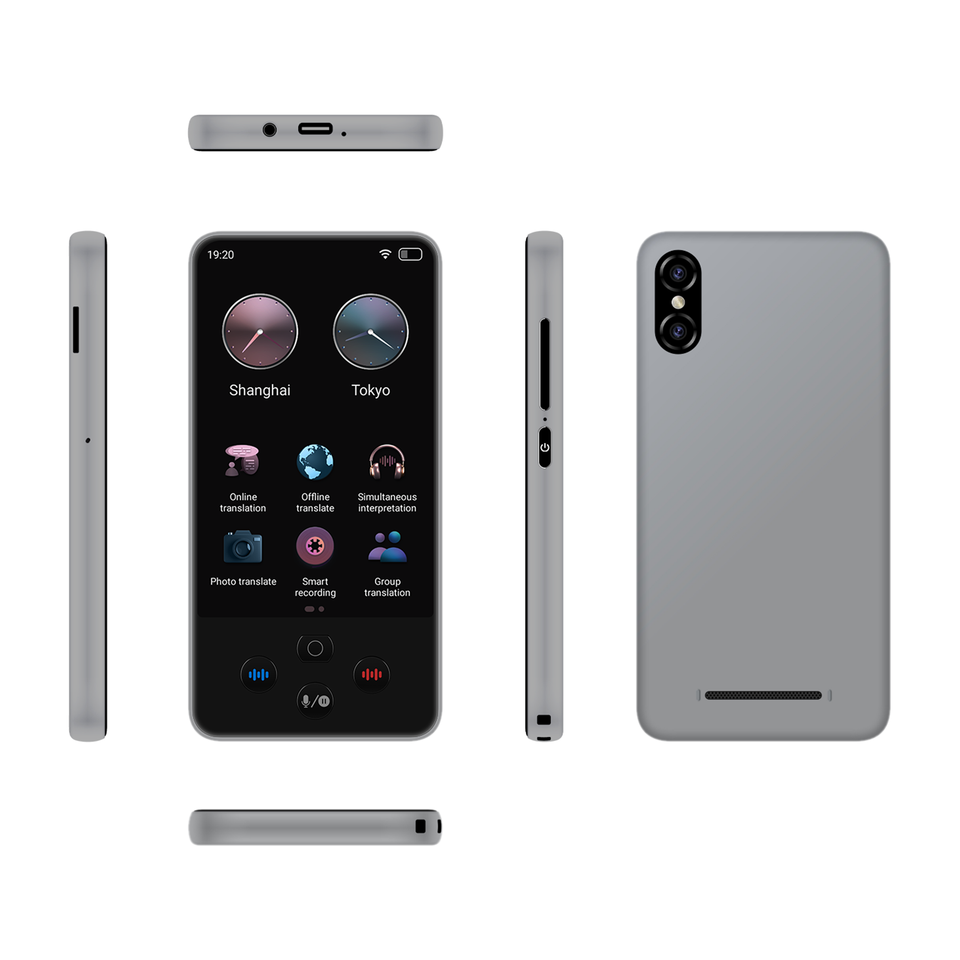 Portátil, Bluetooth, Wifi, Pantalla táctil, Flash incorporado, SDK disponible, Reconocimiento de voz AI, Traducción de voz, Traducción de idiomas, Altavoz incorporado