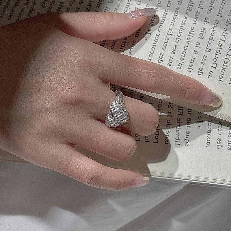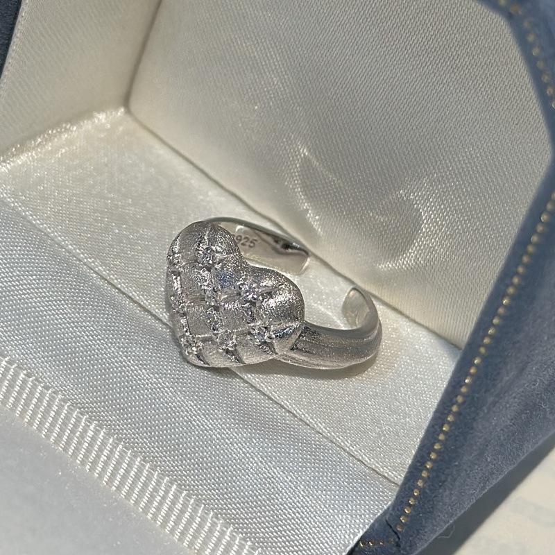 Anillo de Plata de Ley S925 con Acabado Antiguo Cepillado en Forma de Corazón con Incrustaciones de Circonita, Diseño de Joyería Moderno y Elegante