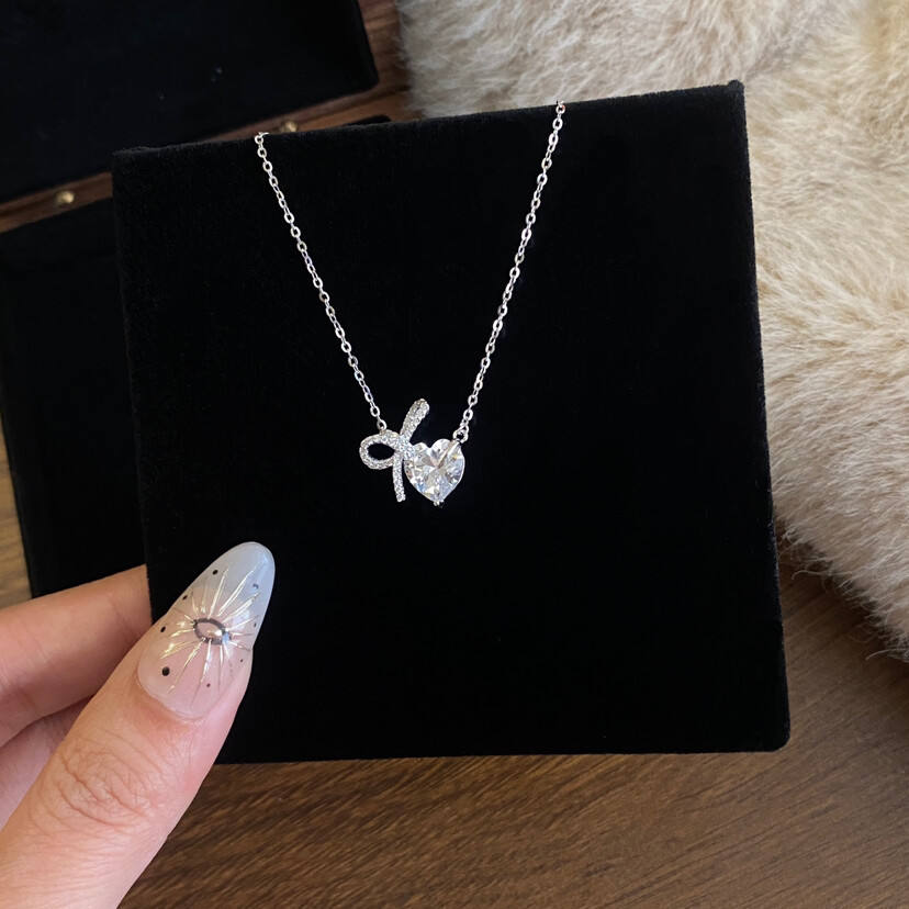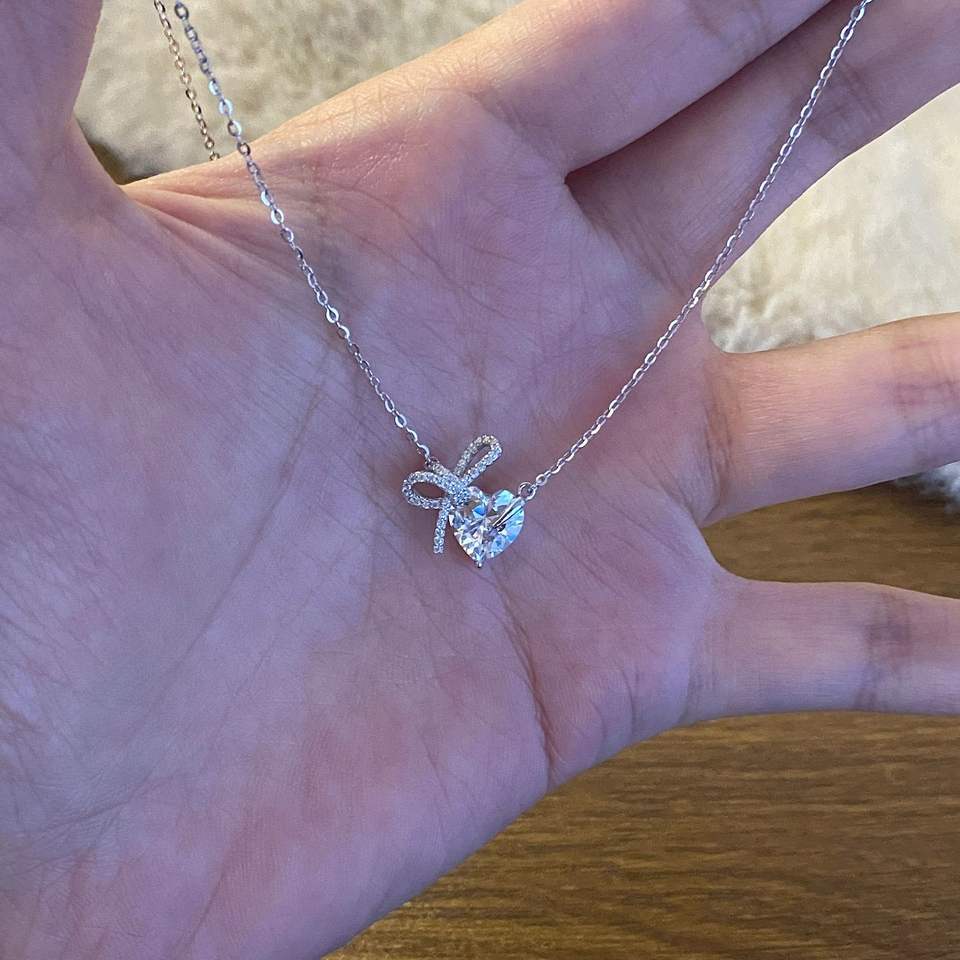 Collar con Colgante de Lazo de Plata de Ley S925 para Mujer, Diseño Dulce y Exclusivo, Cadena de Clavícula de Lujo Ligero con Circonita de Alta Gama