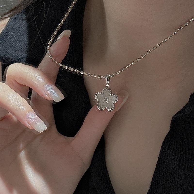 Colgante de Plata de Ley S925 con Diseño de Flor Cepillada, Estilo Vintage, Simple, Moderno y Dulce, con Patrón de Nicho en Oro Rosa