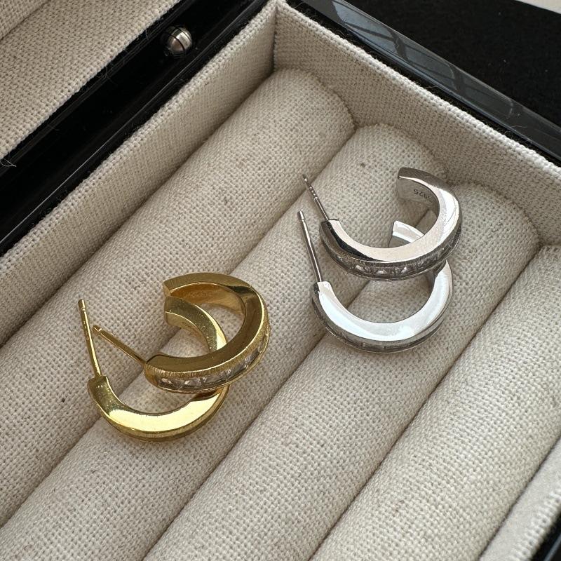 Pendientes de Plata de Ley S925 en Forma de C, Estilo Francés Retro, Joyería Medieval Elegante con Circonita Dorada y Diseño de Nicho Ligero
