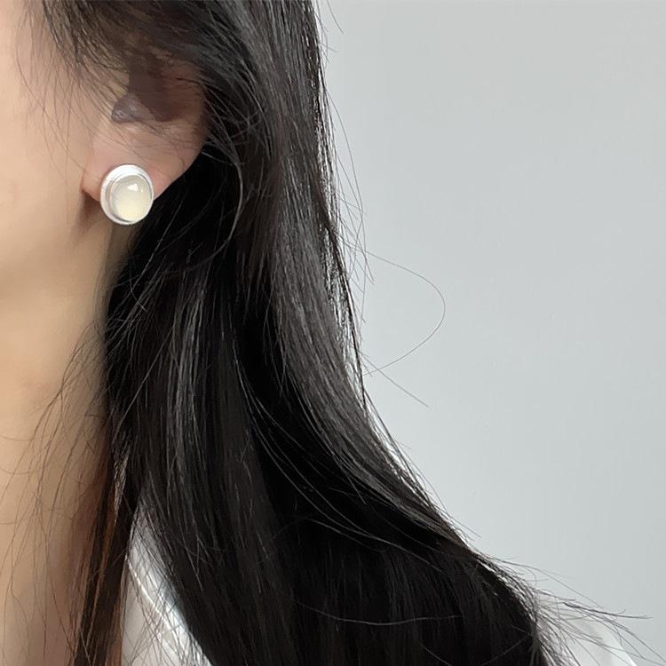 Pendientes Colgantes de Plata de Ley S925 para Mujer, Minimalistas, de Alta Gama, con Ágata Negra Ovalada y Jade Blanco, Acabado Mate