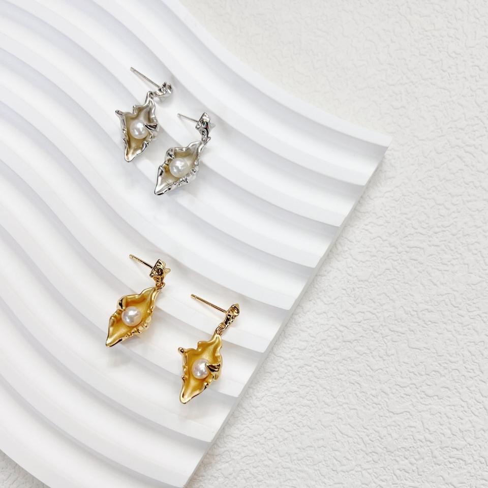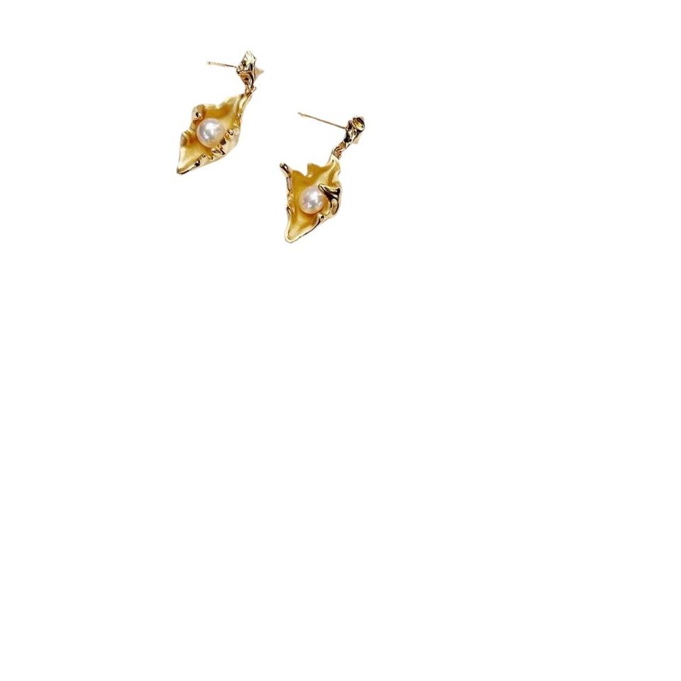 S925 Pendientes de diseñador de plata pura Perla de agua dulce NATURAL RESISTENTE de gama alta Elegante y elegante