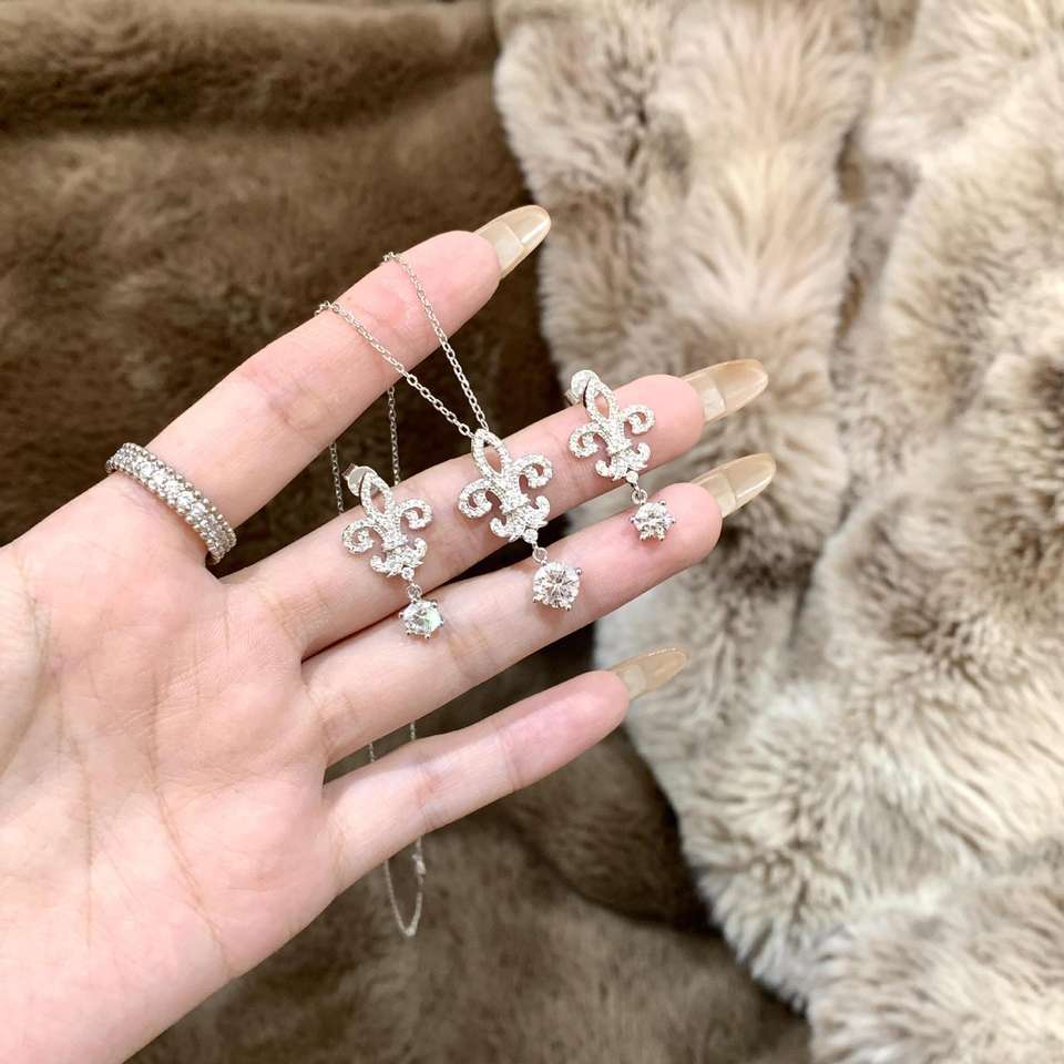 Juego de Joyería Fina de Plata Pura S925, Collar con Colgante Iris de Diamantes Completos, con Aretes, Lujoso y Elegante