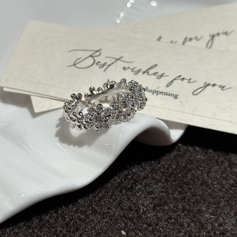 Anillo Floral de Plata Pura S925, Lujo Medieval con Diseño Floral Vintage, Elegancia Francesa Simple, Patrón Geométrico, Piedra Tallada