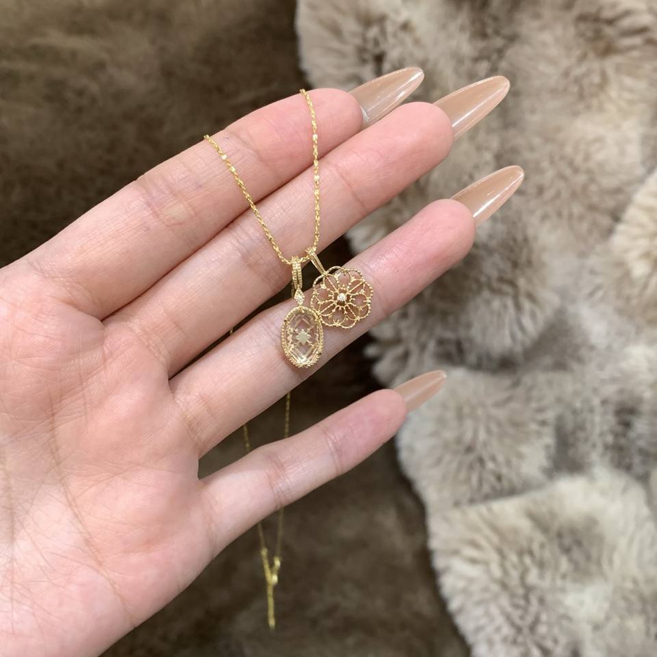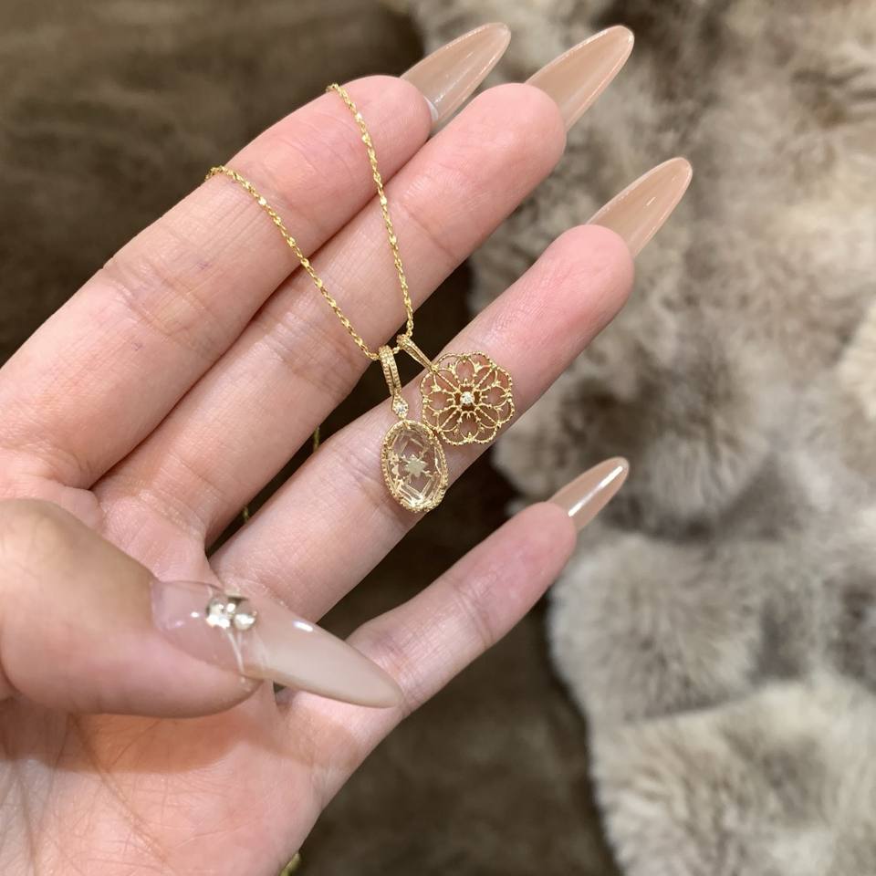 316l Cadena de acero Color oro Zircon Stone Teddy Figured Proyección Collar