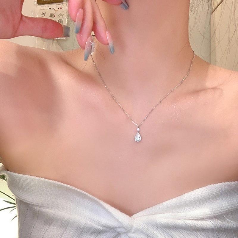 Collar de circón modelo de corazón de piedra de circón de piedra única Aqua de color dorado-1775