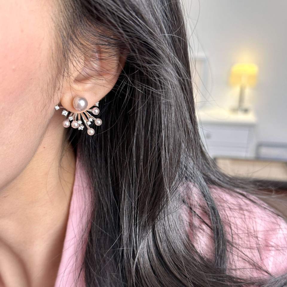 Pendientes de Plata de Ley S925 con Diseño de Rosa Manta en Forma de Abanico y Perlas de Fuegos Artificiales, Joyería de Lujo de Alta Gama de Dos Piezas