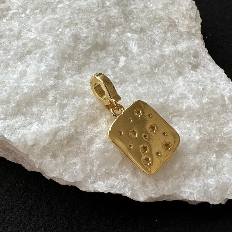Colgante de Plata de Ley S925 con Microincrustaciones de Estrella de Seis Puntas, Estilo Retro Francés, Lujo Europeo Americano, Dijes Cuadrados Simples con Diamantes