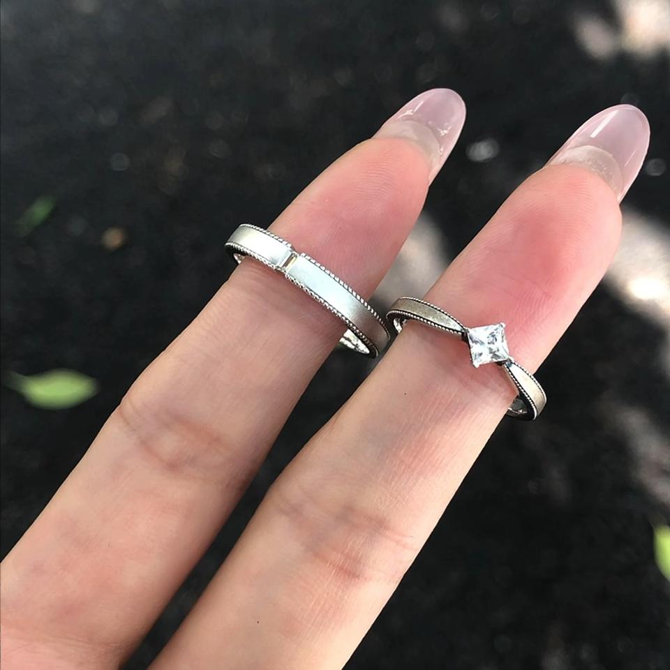 Anillo de Plata de Ley S925 con Diseño Minimalista, Pequeño y Cuadrado, con Incrustaciones de Diamantes Tallados, Apilable, con Acabado Mate Único