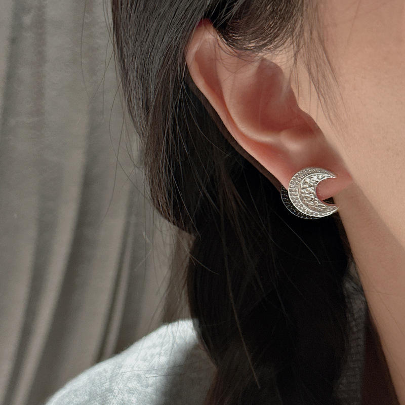 Pendientes de Plata de Ley S925 con Diseño de Luna, Estilo Vintage Antiguo, Incrustaciones de Microcirconitas, Diseño Simple y Moderno, Estilo Colgante