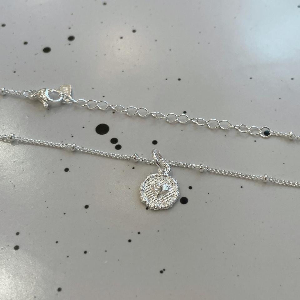 Collar de Plata Pura S925, Cadena de Clavícula con Corazón de Melocotón, Estilo Simple y Lujoso, Encaje Tejido, Material Principal Platino