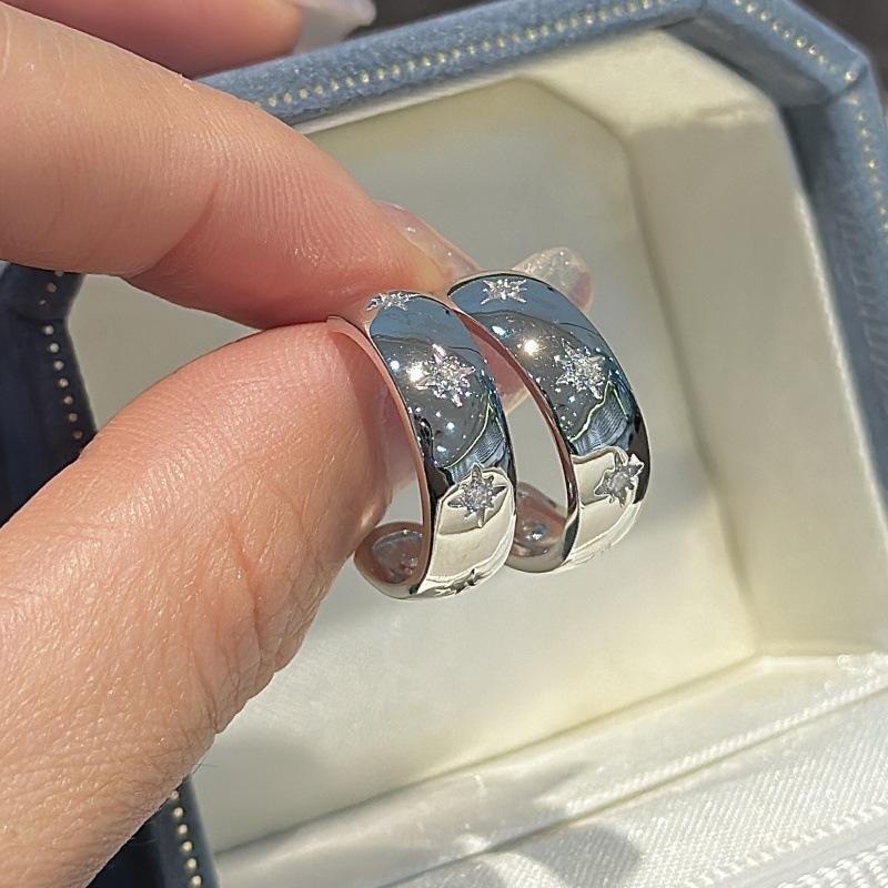 Pendientes de Plata de Ley S925 con Forma de Pentagrama, Diseño de Nicho, Estilo Vintage Simple y Ligero de Lujo, Anillos de Moda con Curvas Suaves