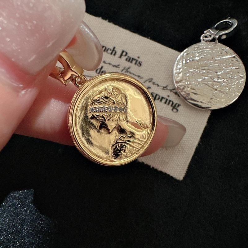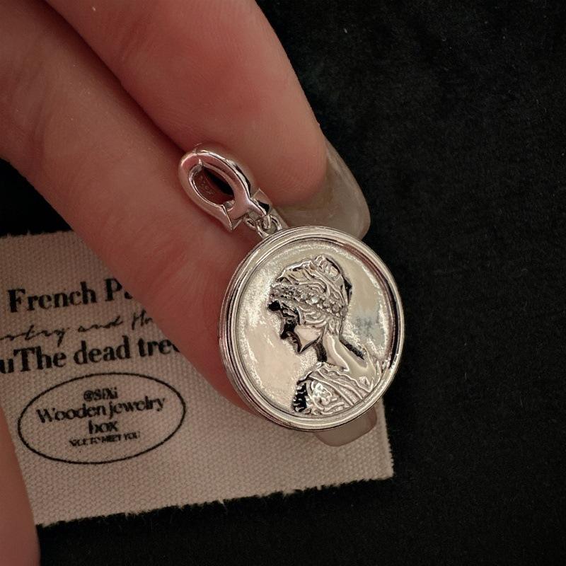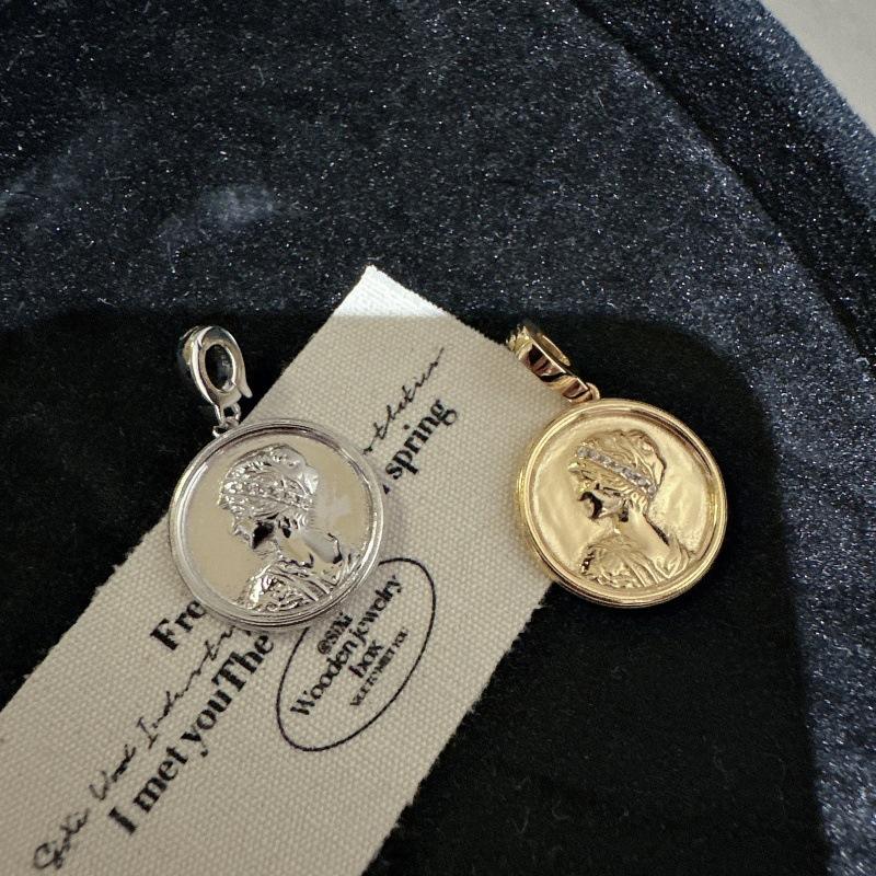Colgante de Retrato de Plata Pura S925, Elegante, Estilo Antiguo Vintage, Ligeramente Incrustado con Circonita, Oro como Material Principal