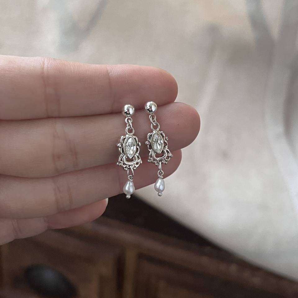 Pendientes Colgantes Wenchi de Plata Pura S925, Estilo Retro de Palacio y Occidental, con Diseño de Gota de Agua, Circonita, Perla y Borla, Patrón Hueco, China