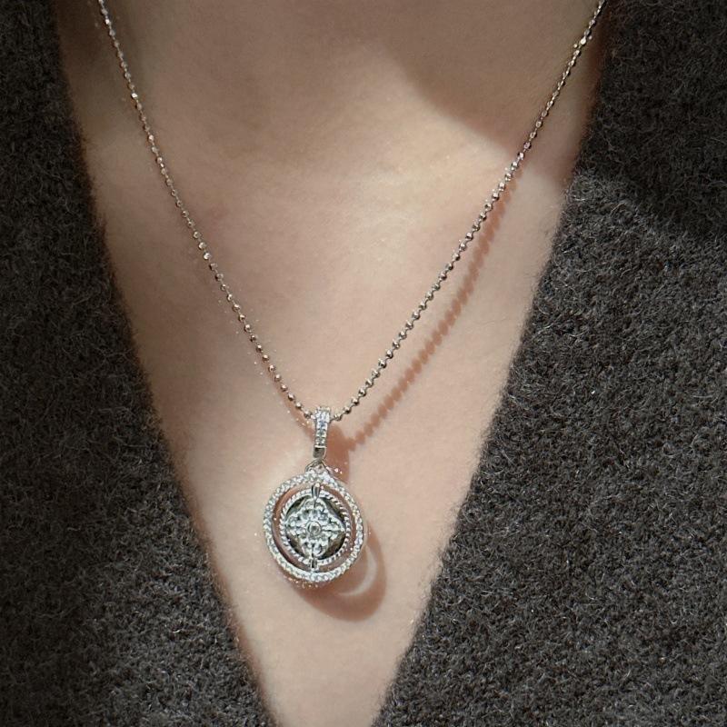 Collar de Plata de Ley S925 con Brújula de los Ocho Tesoros Giratoria, Diseño de Estilo Chino de Lujo, Textura Ligera, Colgantes de Moda