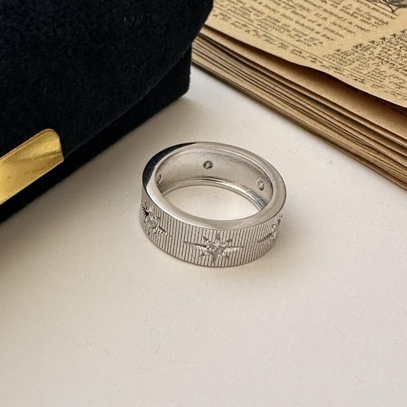 Anillo de Plata de Ley S925 con Estrella de Seis Puntas, Estilo Francés Antiguo, Elegancia Retro, Lujo Ligero, Diseño Simple con Incrustaciones Verticales, Corte de Diamante