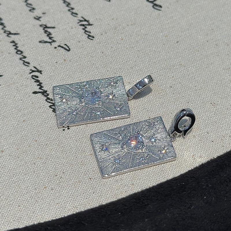 Colgante de Plata de Ley S925 con Diseño de Estrella de Seis Puntas y Corazón Cuadrado, Estilo Antiguo de Moda, Patrón de Nicho Simple y Genial