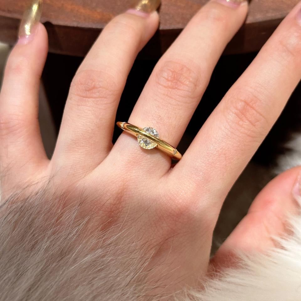 Anillo de Plata Pura S925 con Estrella y Diamante Giratorio, Gema Brillante de Alta Gama con Diseño de Planeta Orbital en el Universo