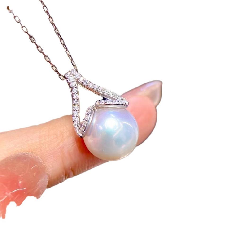 Collar de Plata de Ley S925 con Diseño Simple y Perla Sintética para Mujer, Estilo Ligero y de Lujo, Colgante Fino de Alta Gama D8435