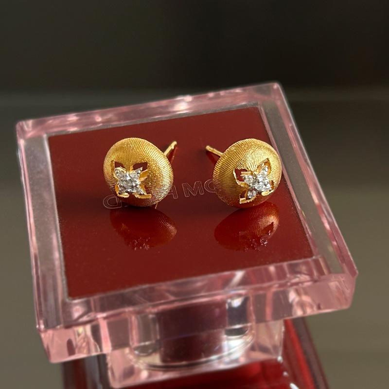 Pendientes de Botón Finos de Plata de Ley S925, Estilo Vintage Italiano, Acabado Pulido de Precisión, Lujosos, Chapados en Oro, con Trébol y Diamantes