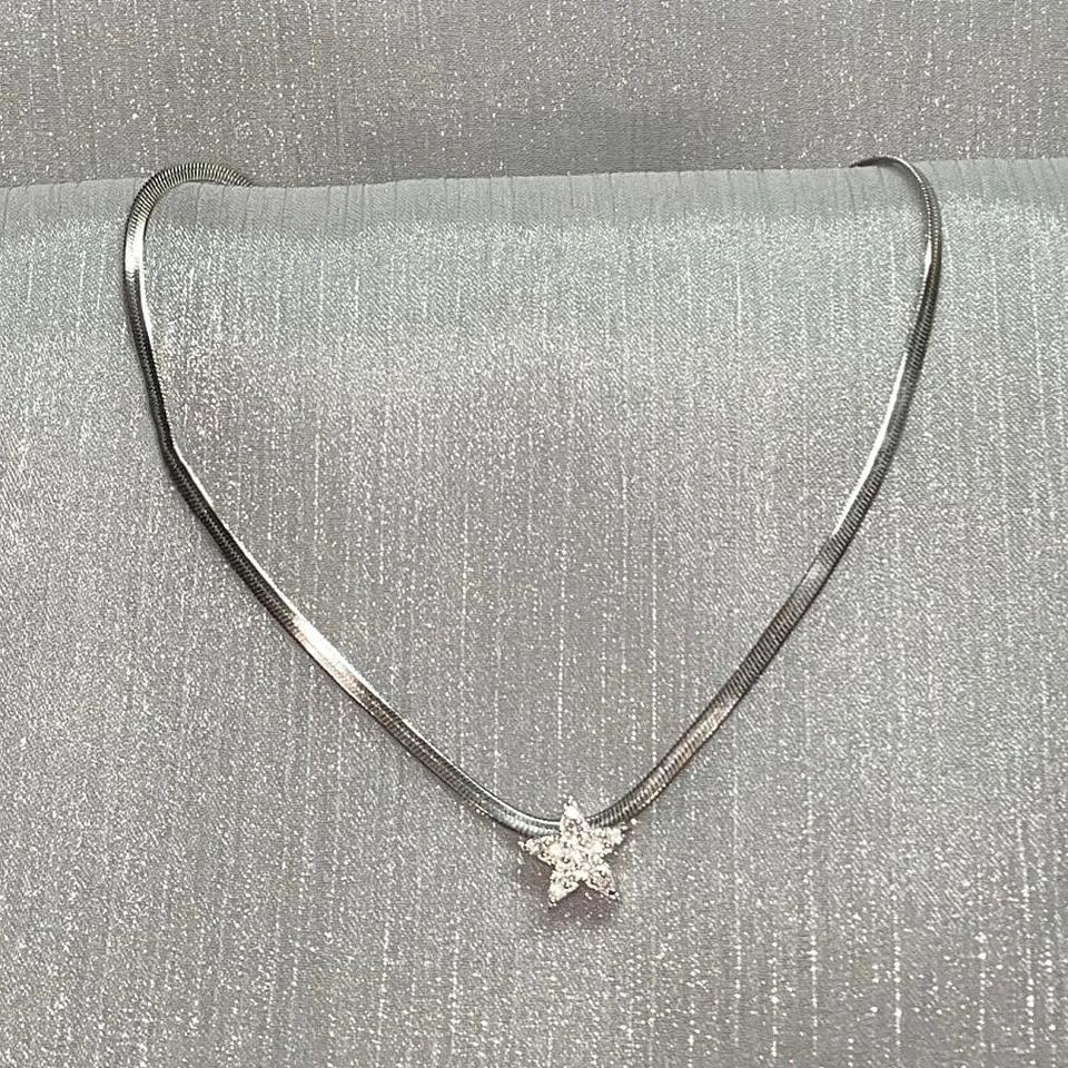 Collar con Colgante de Corazón de Plata de Ley S925 para Mujer, Forma de Estrella, Colores Frescos, Diseño de Alta Gama para un Estilo Chic y Moderno
