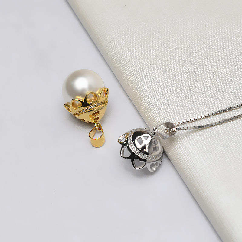 Colgante de Plata S925 con Perla de 12-13 mm para Mujer, con Dije de Sombrero Baotou, para Joyería DIY, Componentes y Base Vacía 744
