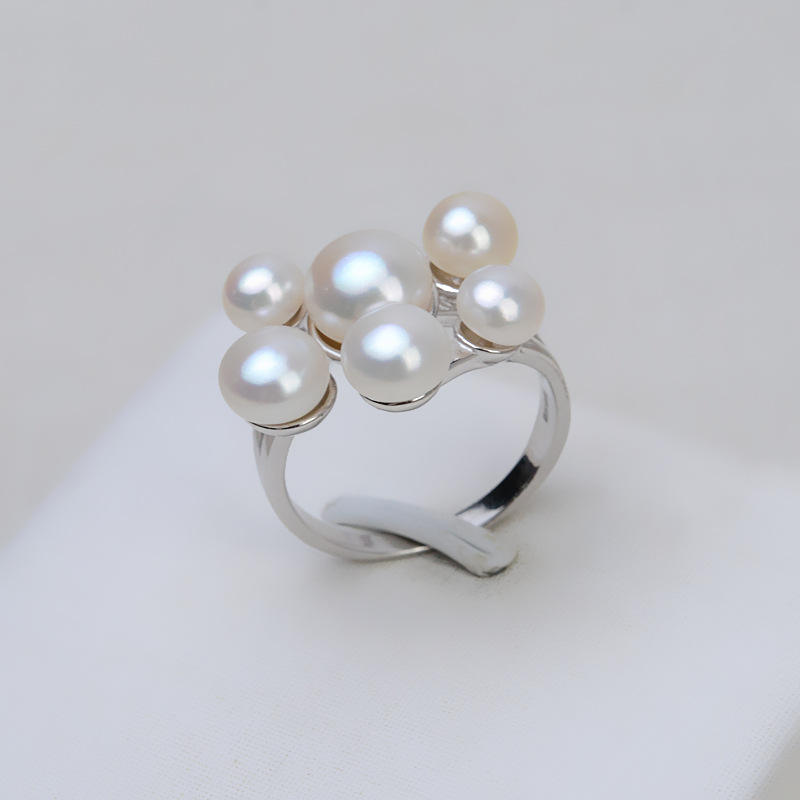 Anillo Abierto de Plata S925 con 6 Cuentas, Anillo de Perlas Hecho a Mano, Chapado en Oro Rosa, Juego de 16 Accesorios