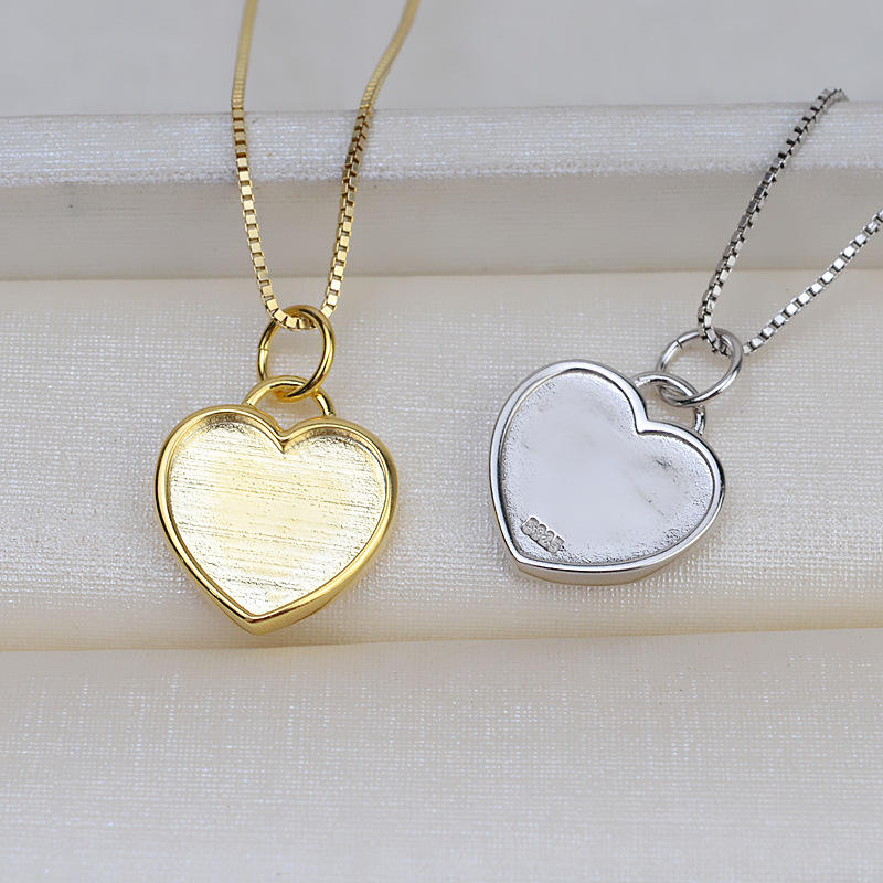 Base de Plata S925 para Colgante de Perlas DIY, Accesorio para Cabello y Pelo, Base Vacía con Forma de Corazón y Fondo Plano, Aguja para Colgante, Fornituras de Joyería Fina