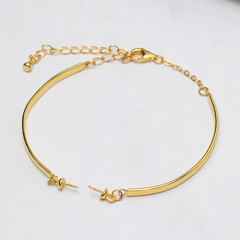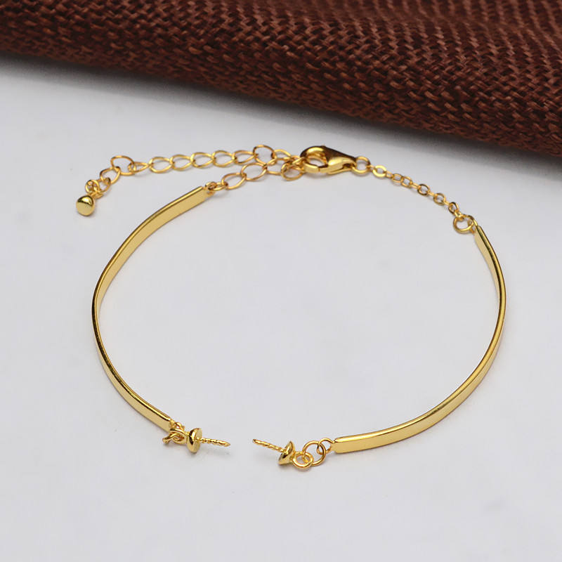 Pulsera de Plata S925 con Diseño Liso y Patrón Audaz, Perlas Sueltas para Joyería DIY con Incrustaciones Semi-Acabadas 563
