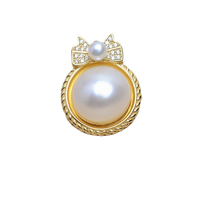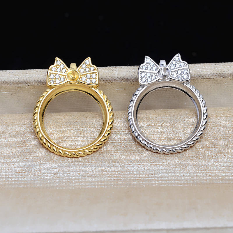 Colgante de Plata S925 con Lazo, Perla de Mármol de 16 mm, Accesorios para DIY, Bandeja Vacía, Componentes y Fornituras de Joyería Semiterminadas 5291