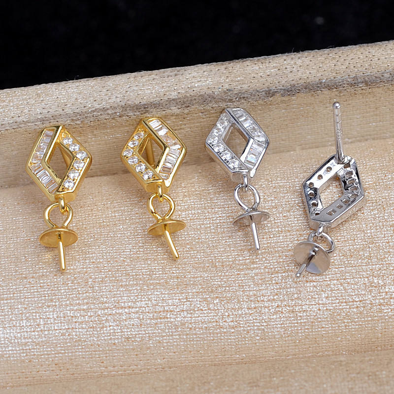 Aretes de Plata S925 con Forma de Mariposa y Corona, Accesorio para DIY, Joyería de Perlas, Tapas para Cuentas de 3mm, Soporte Vacío, Semi-Acabado JG5942