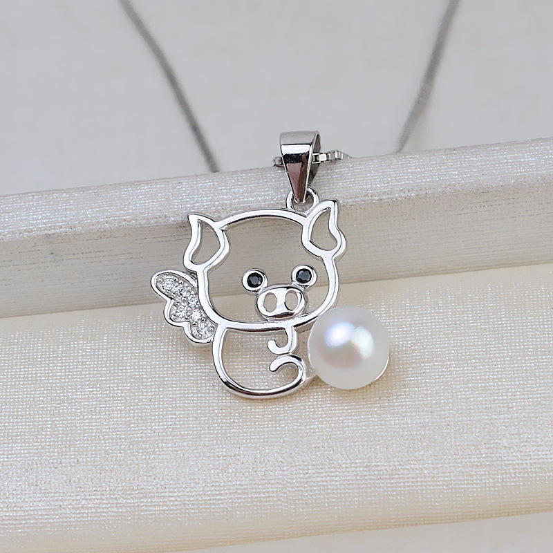 Colgante de Plata S925 con Diseño de Cerdo del Zodiaco Chino, Accesorio para Joyería DIY, 6-8 Perlas, Colgantes Finos con Forma de Cabello, Base Vacía, Número de Artículo 1943