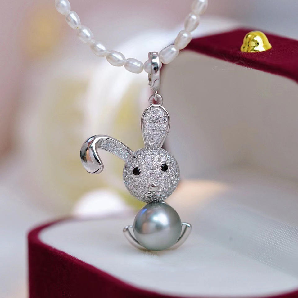 Colgante de Plata S925 para Collar Estilo Conejo, con Cuentas Redondas de 8-9mm, para DIY, 31042, Colgantes y Dijes de Perlas
