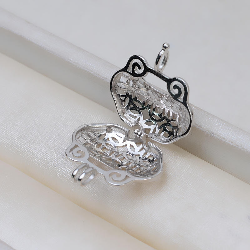 Accesorios de Plata S925 para DIY, Estilo Europeo Americano, Colgante con Cierre de Seguridad, Jaula para Perlas de 6-7.5mm sin Orificio, Soporte Vacío para Perlas, Cuentas de Moda de 3mm