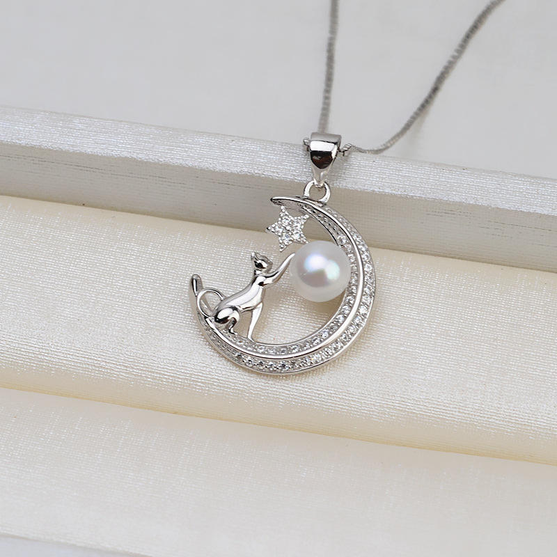 Accesorios de Plata S925 para DIY, Colgante de Corazón 7-8 mm para Mujer, Cadena de Clavícula con Colgante de Luna y Cabello de Feto, Collar de Perlas, Dijes Finos Vacíos