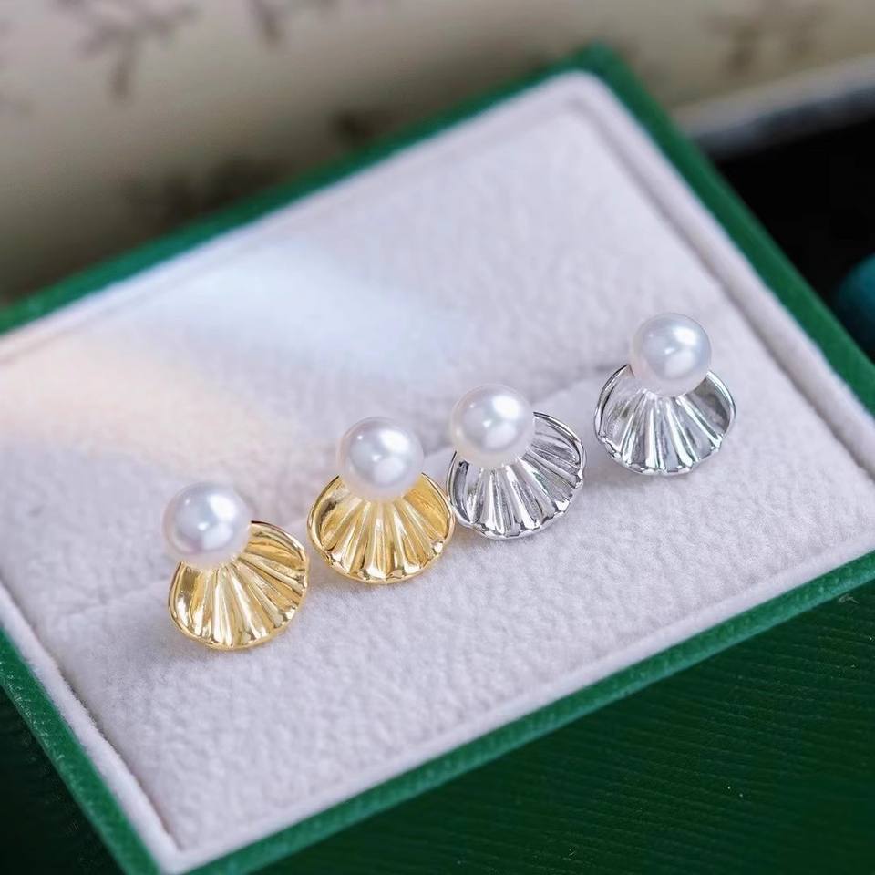 Accesorios de Plata S925 para DIY con Perlas, Cuentas de 5-7mm, Pendientes con Base Vacía, Modelo 22324, Joyería de Moda