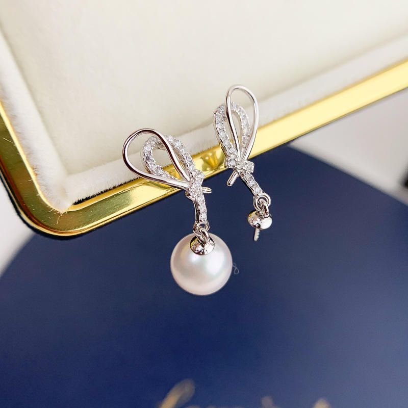 Accesorios de Plata S925 para DIY con Perlas, Cuentas Redondas de 7-10 mm, Bandeja Vacía, Lazo 20877-Eearnail, Joyería de Plata, Pendientes