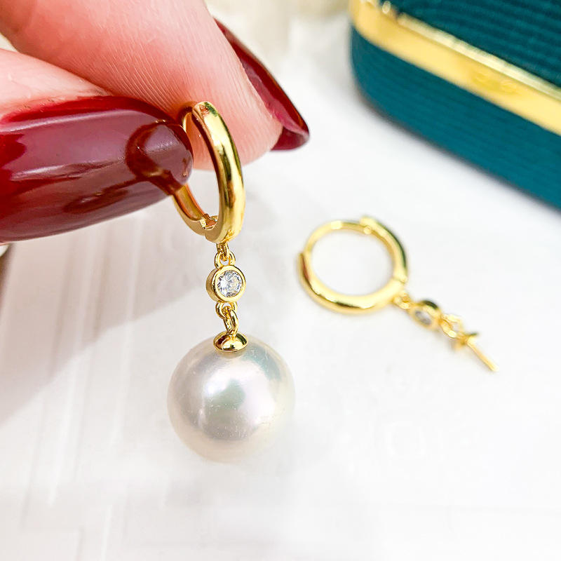 Accesorios de Plata S925 para DIY con Perlas de 8-12mm, 21558, Pendientes de Moda con Bandeja Vacía y Borla