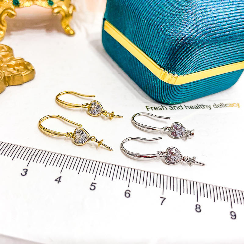 Aretes de Plata S925 con Perlas DIY, Estilo Amor, Soporte Hueco para Perlas de 8-11mm, 20926, Aretes Colgantes de Moda DIY