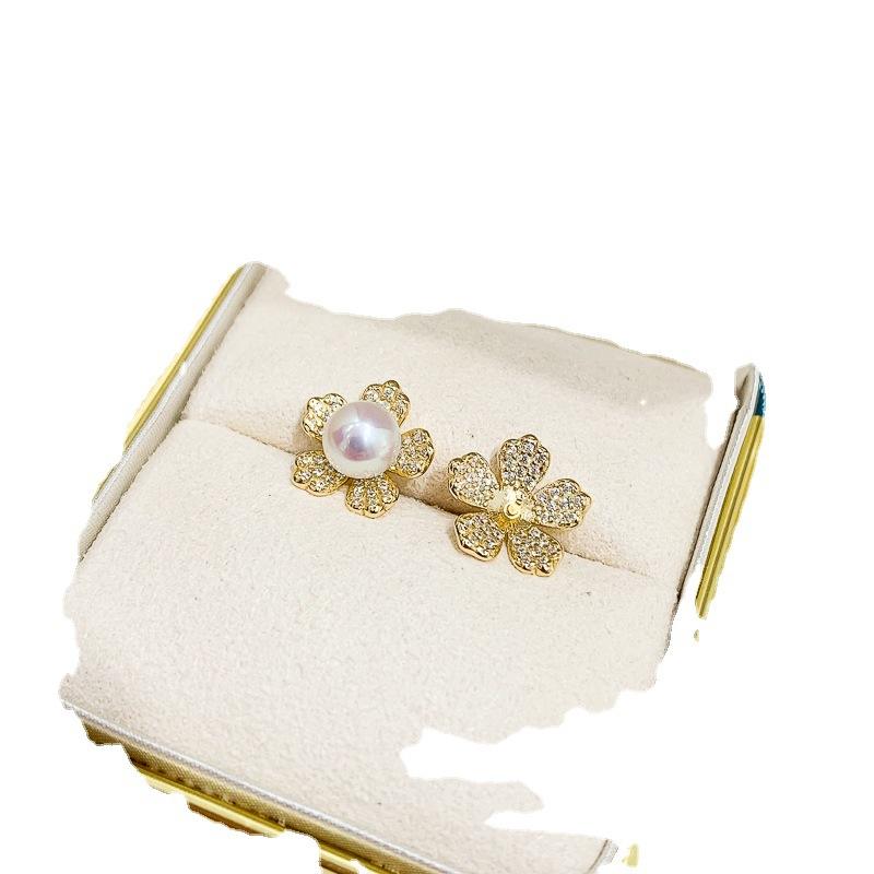 Accesorios de Plata S925 para DIY con Perlas, Bandeja Vacía para Perlas Redondas de 5-7mm, Pendientes Pequeños con Forma de Flor, Modelo 20904