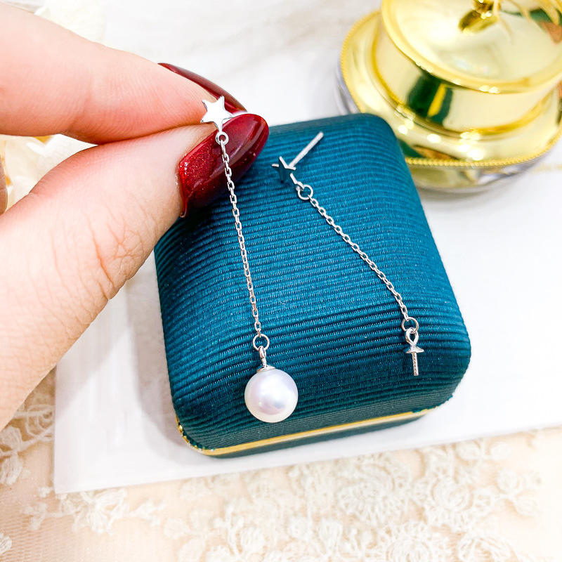 Aretes de Plata S925 con Soporte para Perlas DIY, Joyería con Forma de Estrella, para Perlas de 7-10mm, Aretes Colgantes de Moda 2023
