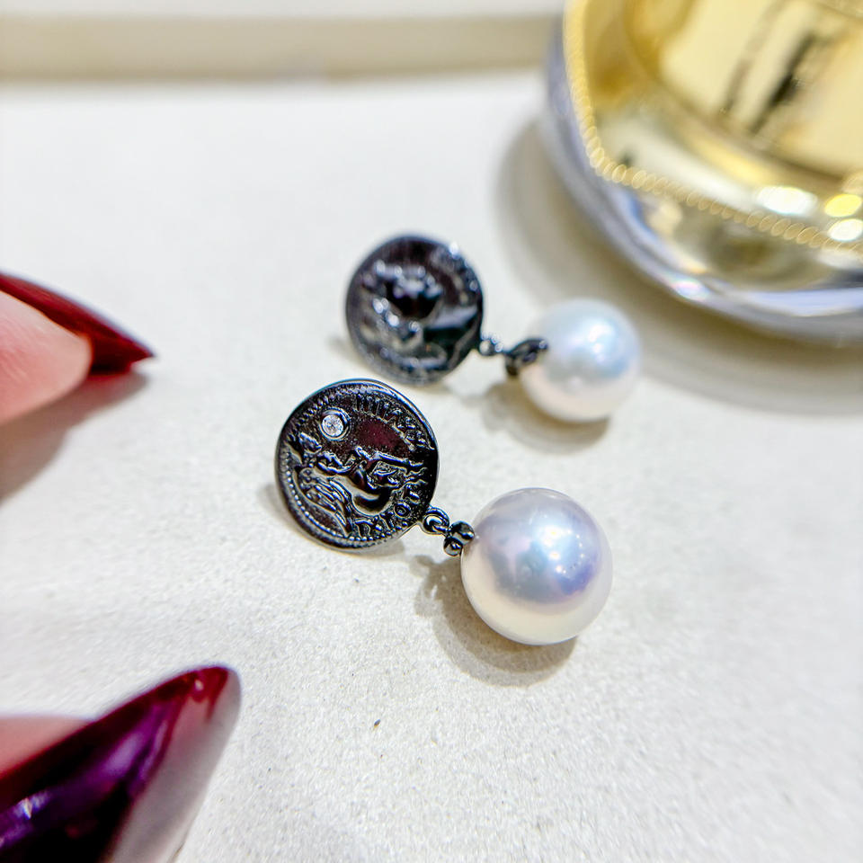 Accesorios de Plata S925 para DIY con Perlas, Bandeja Vacía para Perlas Redondas de 9-13mm, Pendientes Modernos 22235