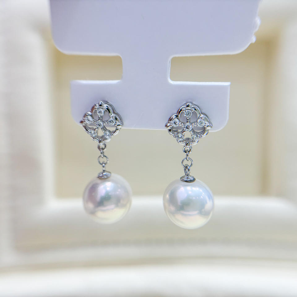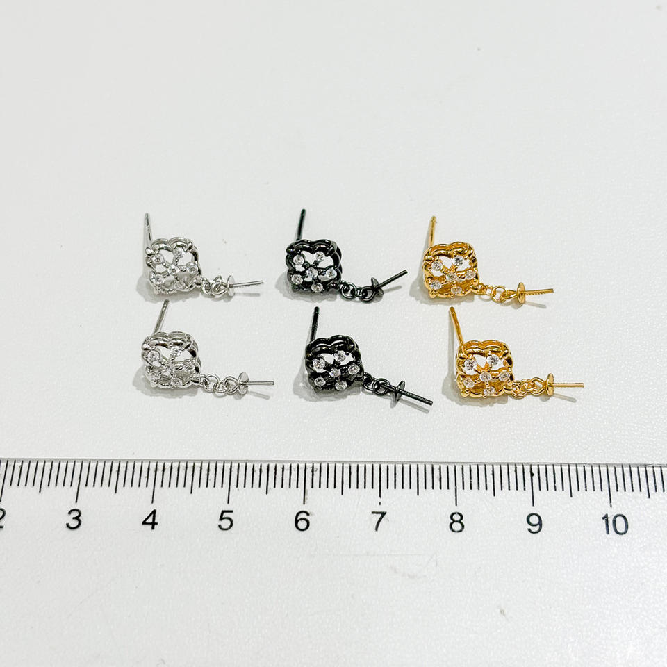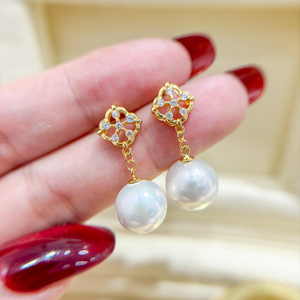 Accesorios de Plata S925 para DIY con Perlas, Joyería de Plata de Moda, Aretes con Cuentas Redondas de 9-15 mm y Bandeja Vacía 22244