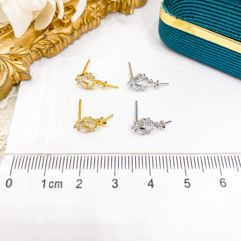 Accesorios de Plata S925 para DIY, Pendientes de Plata con Perlas Redondas de 8-11mm y Base Vacía 21156