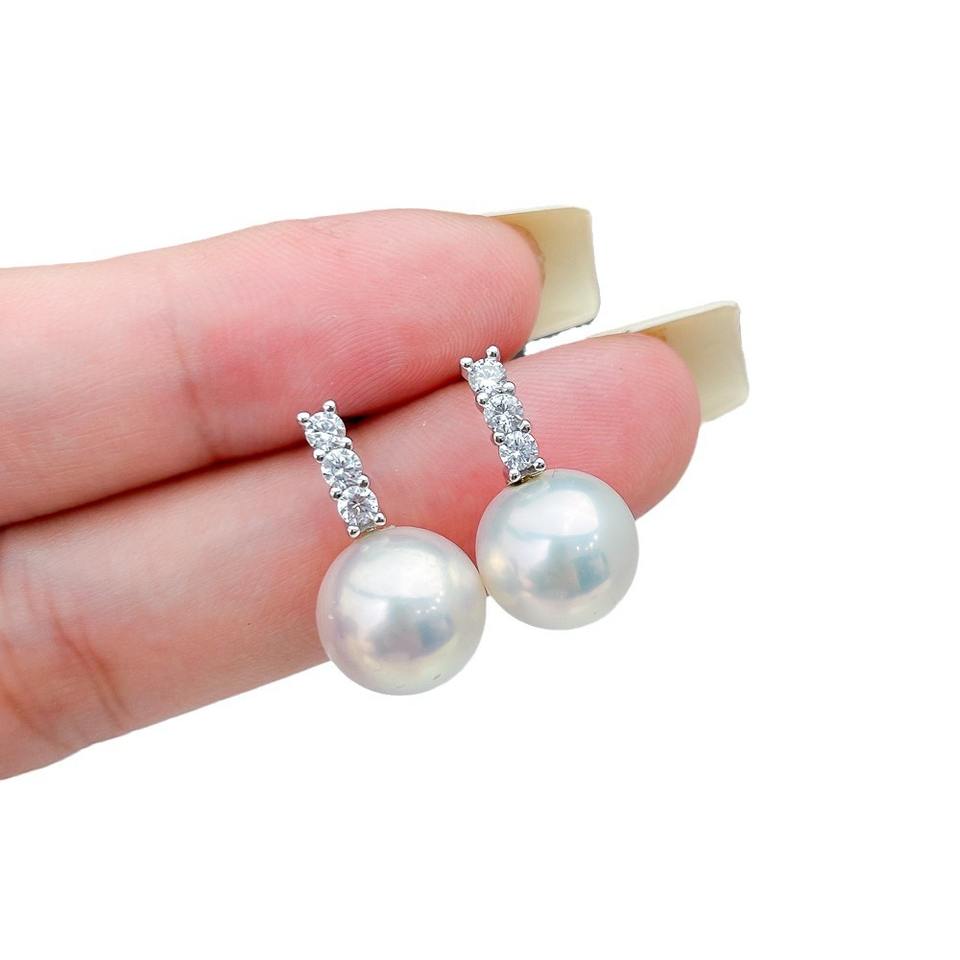 Pendientes de Plata S925 con Perlas DIY, Pendientes de Moda con Tres Diamantes de Reina y Cuentas Redondas de 9-13 mm, Modelo 22286