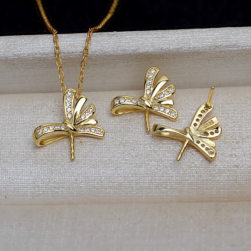 Conjunto de Joyería de Plata S925 con Perlas para Mujer, Tallas 9-14, Collar y Aretes con Colgante de Barra, Aguja Recta 4138, Accesorios de Moda