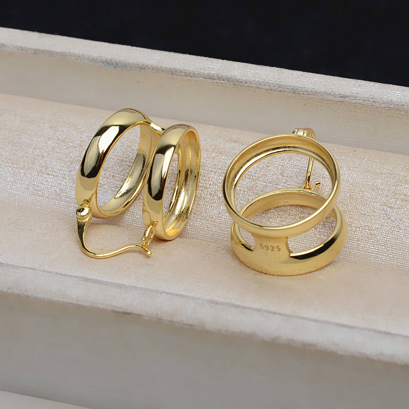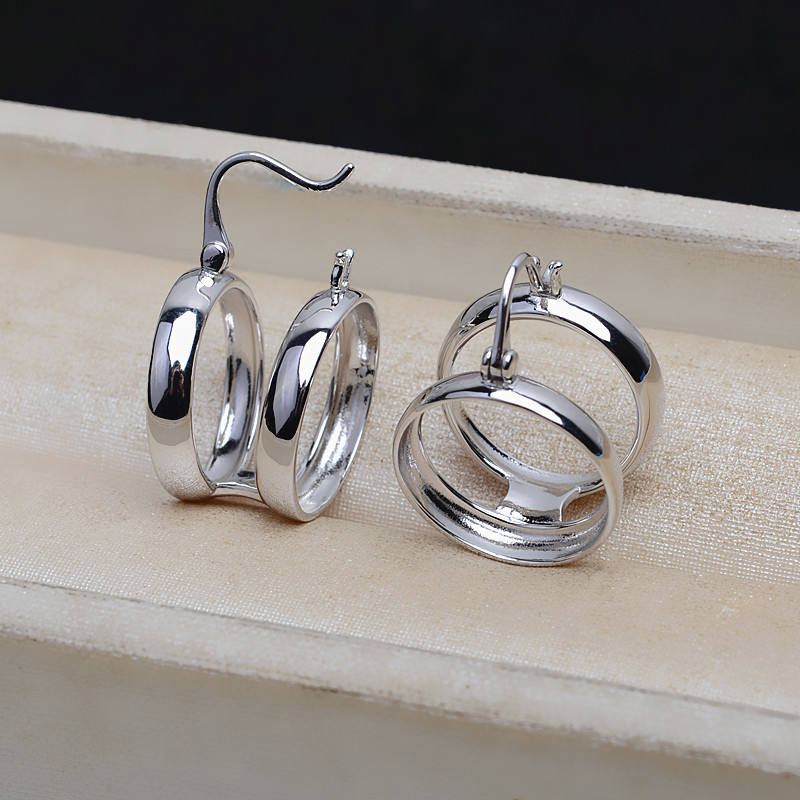 Hebilla para Pendientes de Plata S925 con Doble Cuentas, 16 mm, Perla de Mármol, Accesorios para DIY, Bandeja Vacía Semiterminada 4896, Joyería de Moda